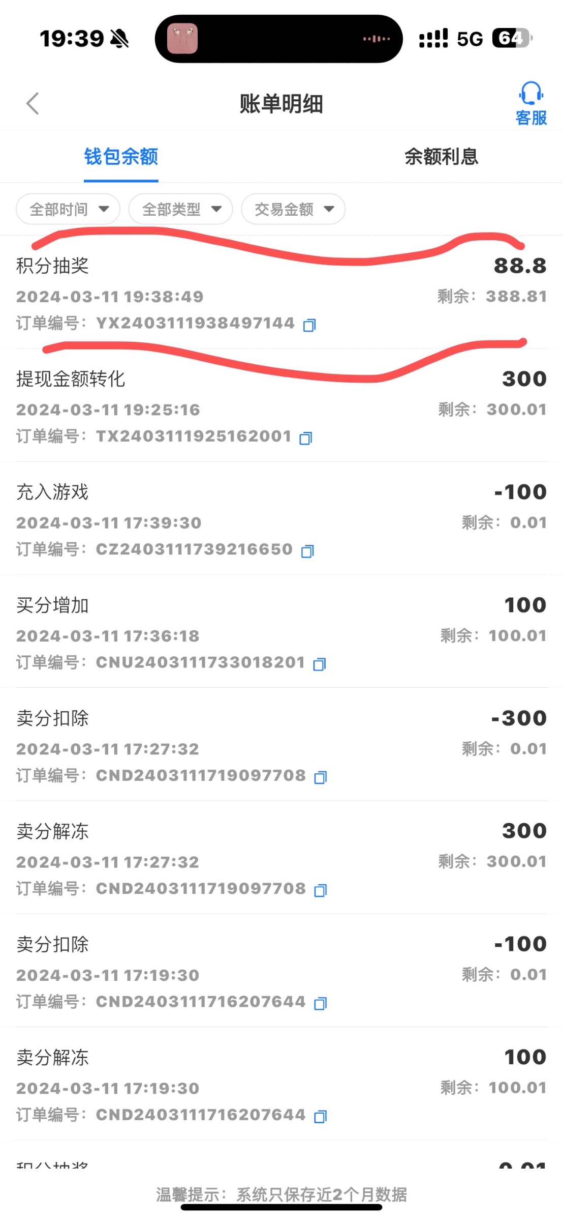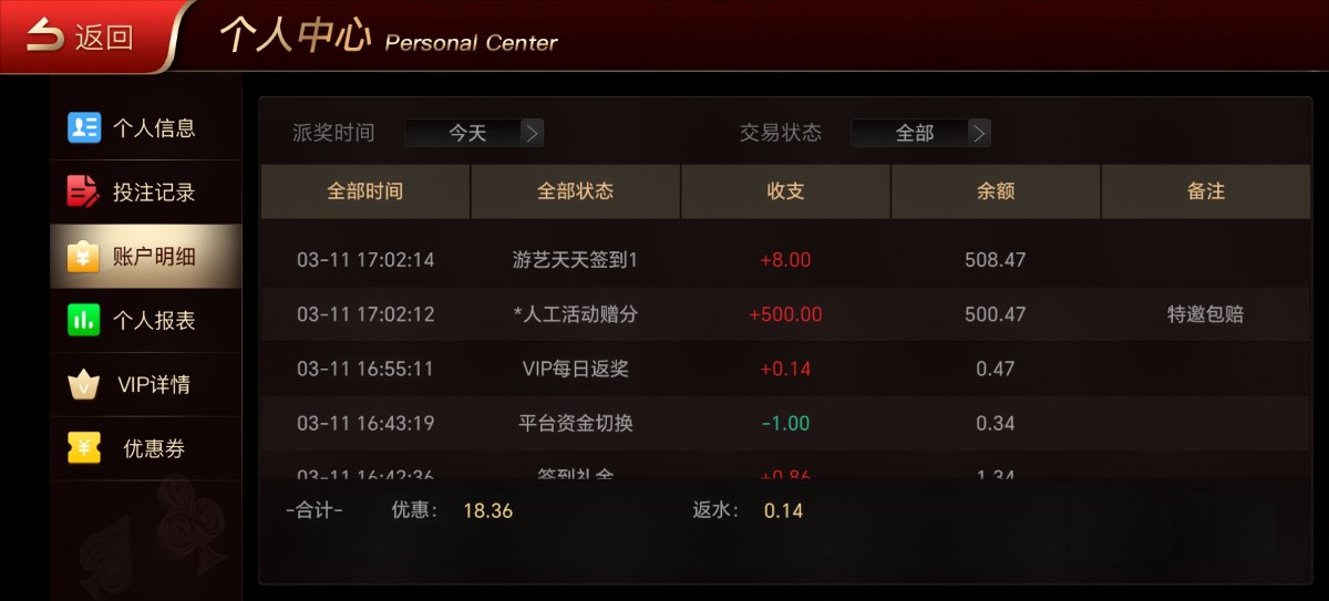是分笔充的,我想着最多就赔100,没想到赔了500,500是上限,