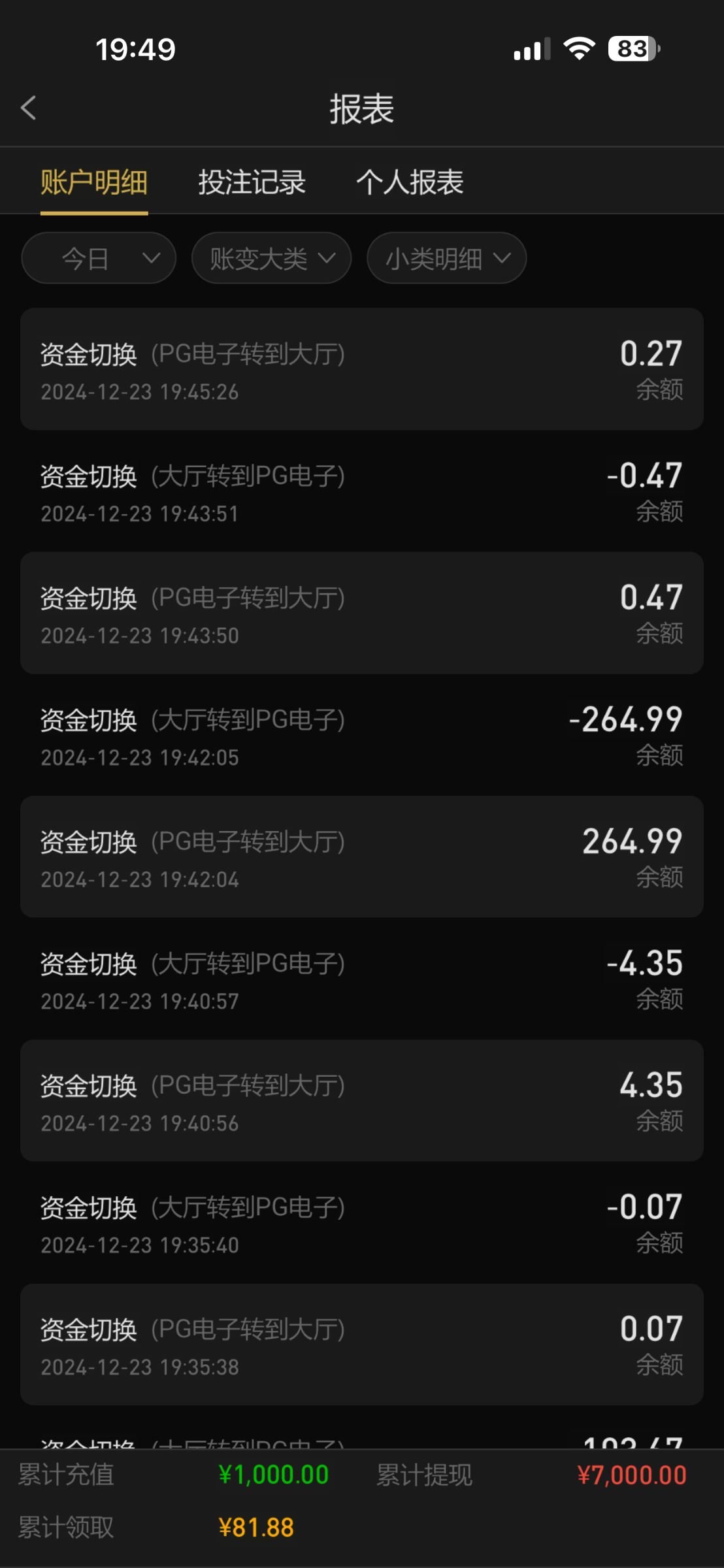 充1000一共 提7000