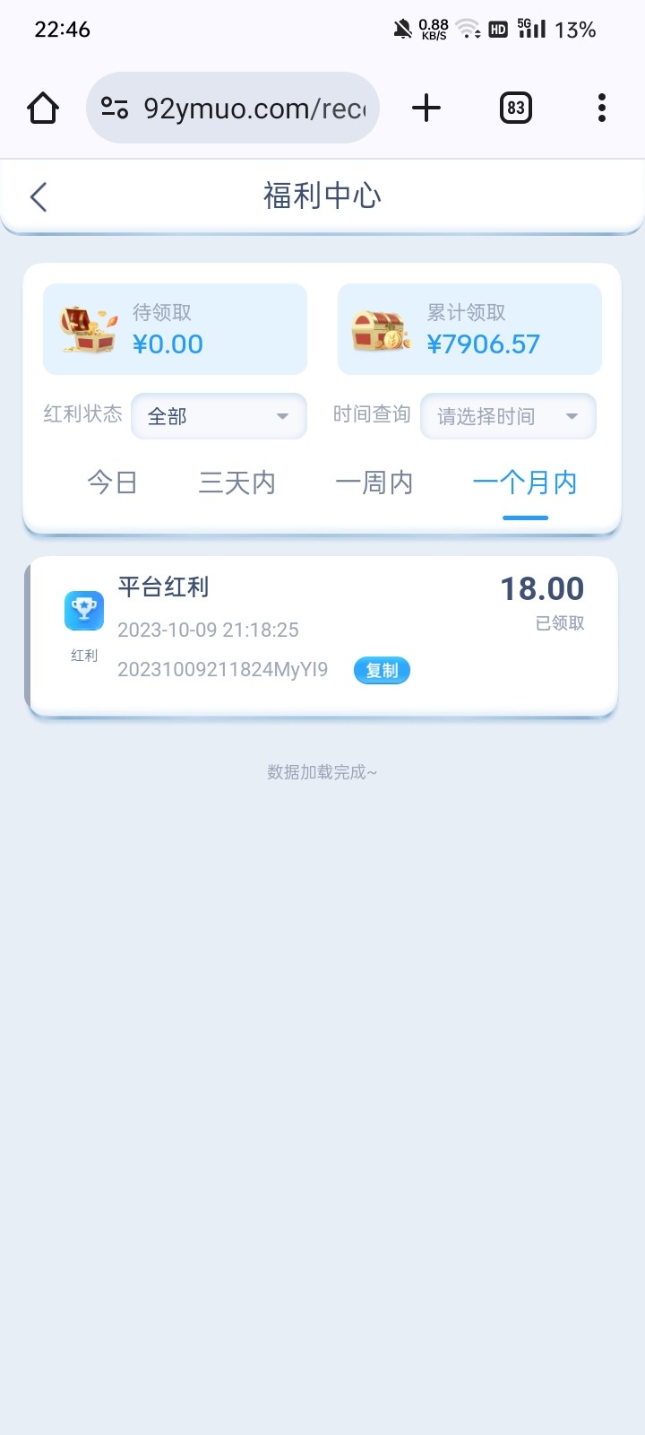 上个月回馈给了58  提现秒封号