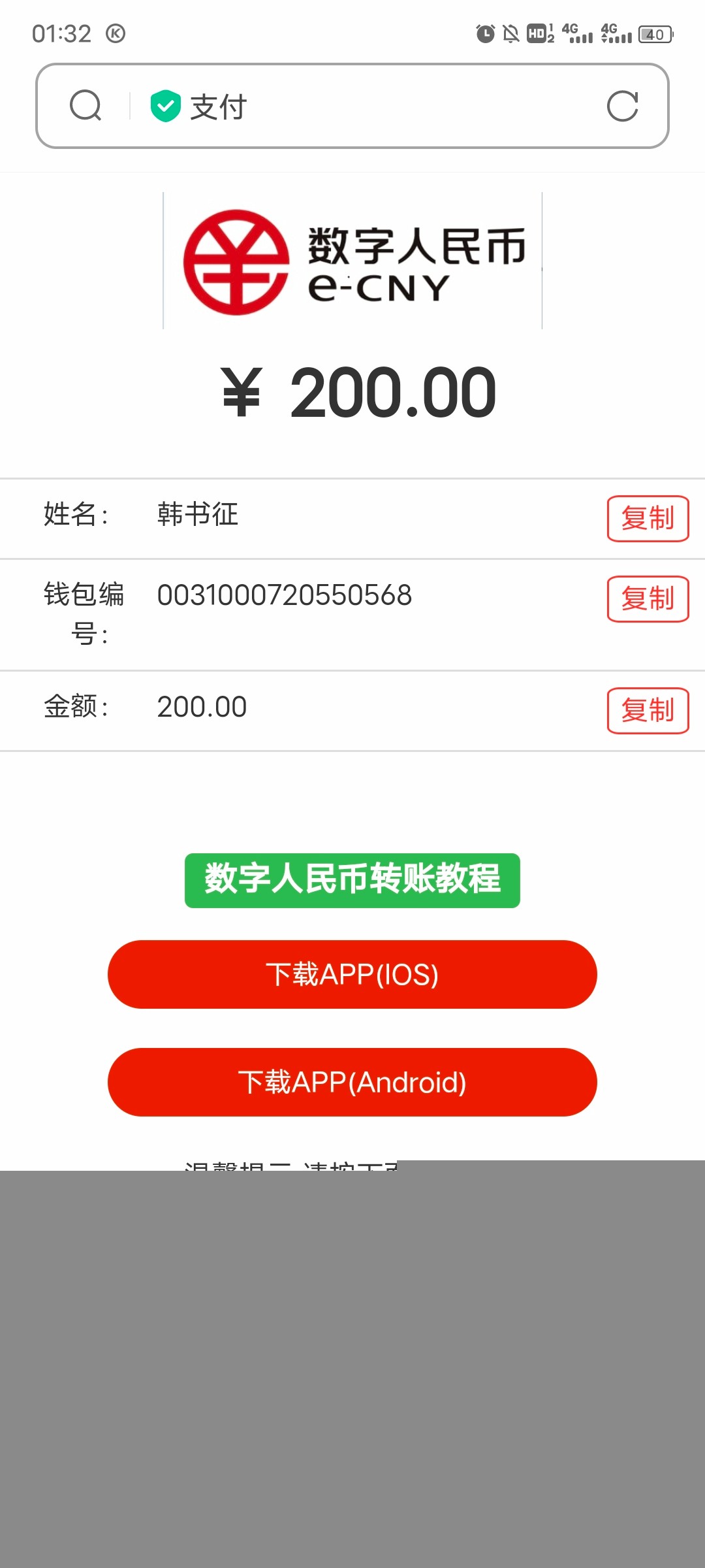 电子钱包里没钱了,选择了数字人民币上分,充了200一直不到账,问了几遍全是复制粘贴的那两句话,1点多充的,现在5点了