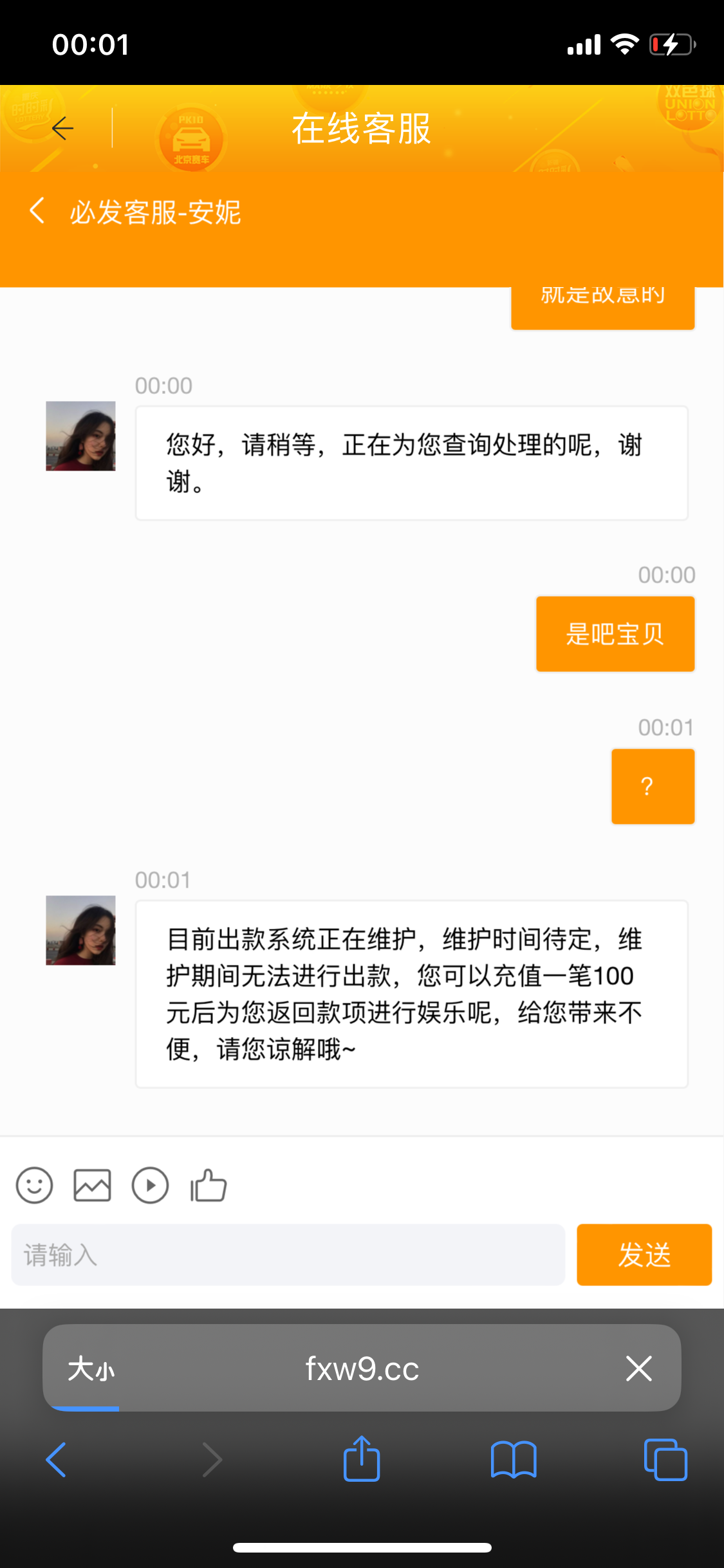 联系客服会说你提款的出款通道维护    需要充值100返款