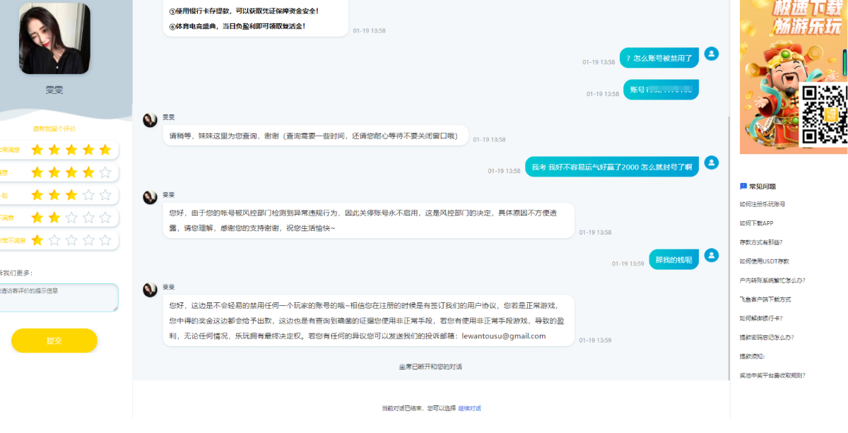 乐玩100上2400被封号黑了