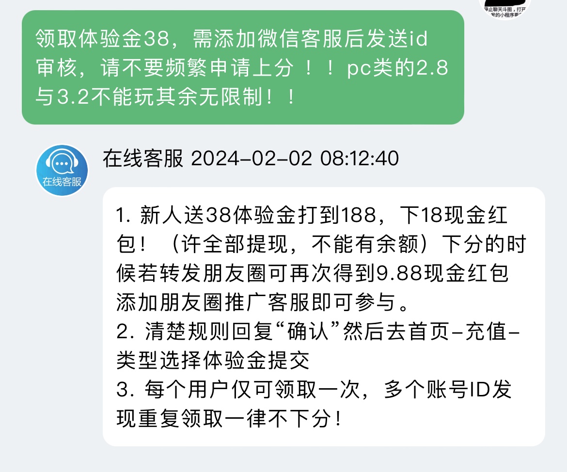 微信登录联系在线客服申请28娱乐到188兑换18红包,多号多得