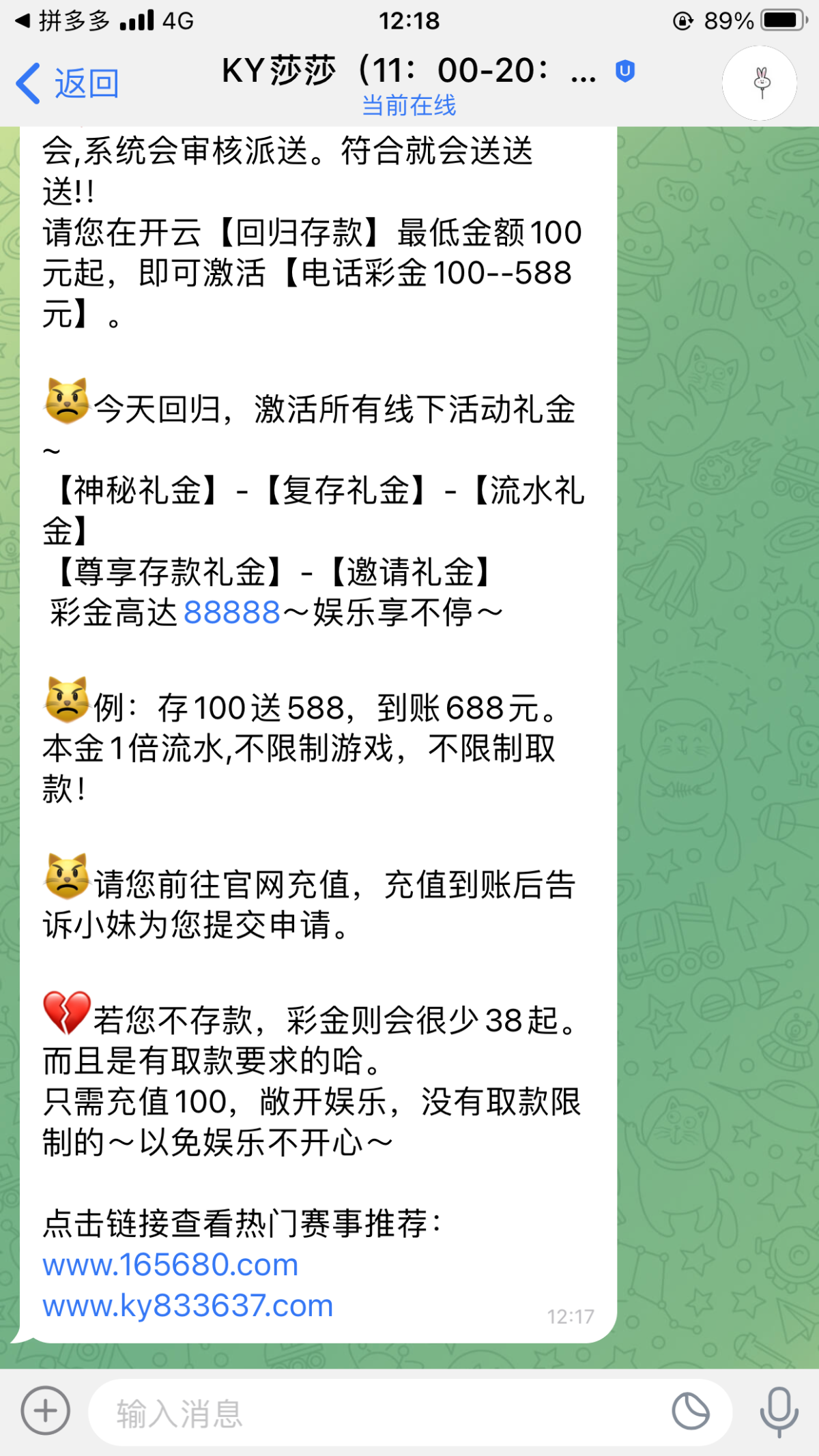 打电话来叫我领取,进网站找客服给的联系方式充100送588可信吗?以前在这玩过