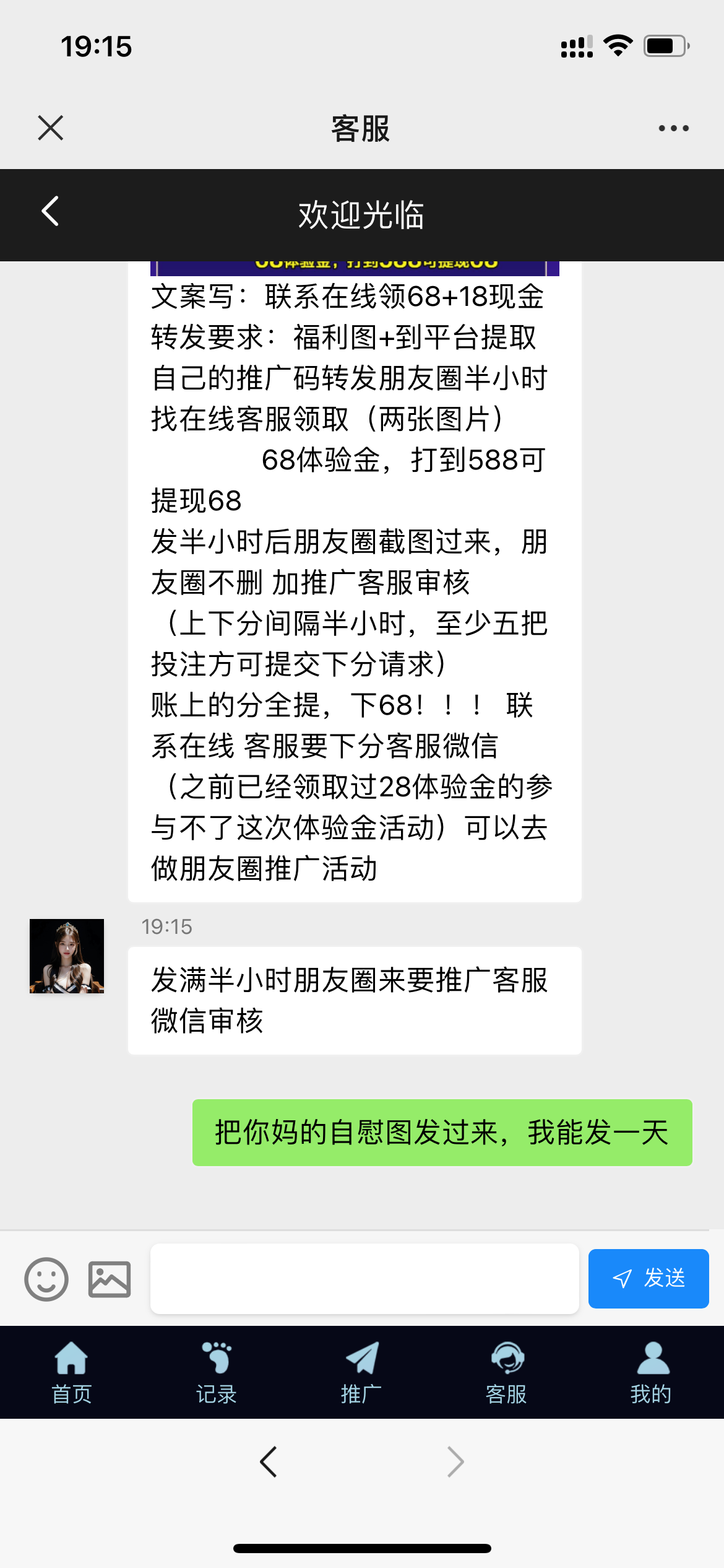 68体验金,打到588可提现68(上下分间隔半小时,至少五把投注方可提交下分请求)