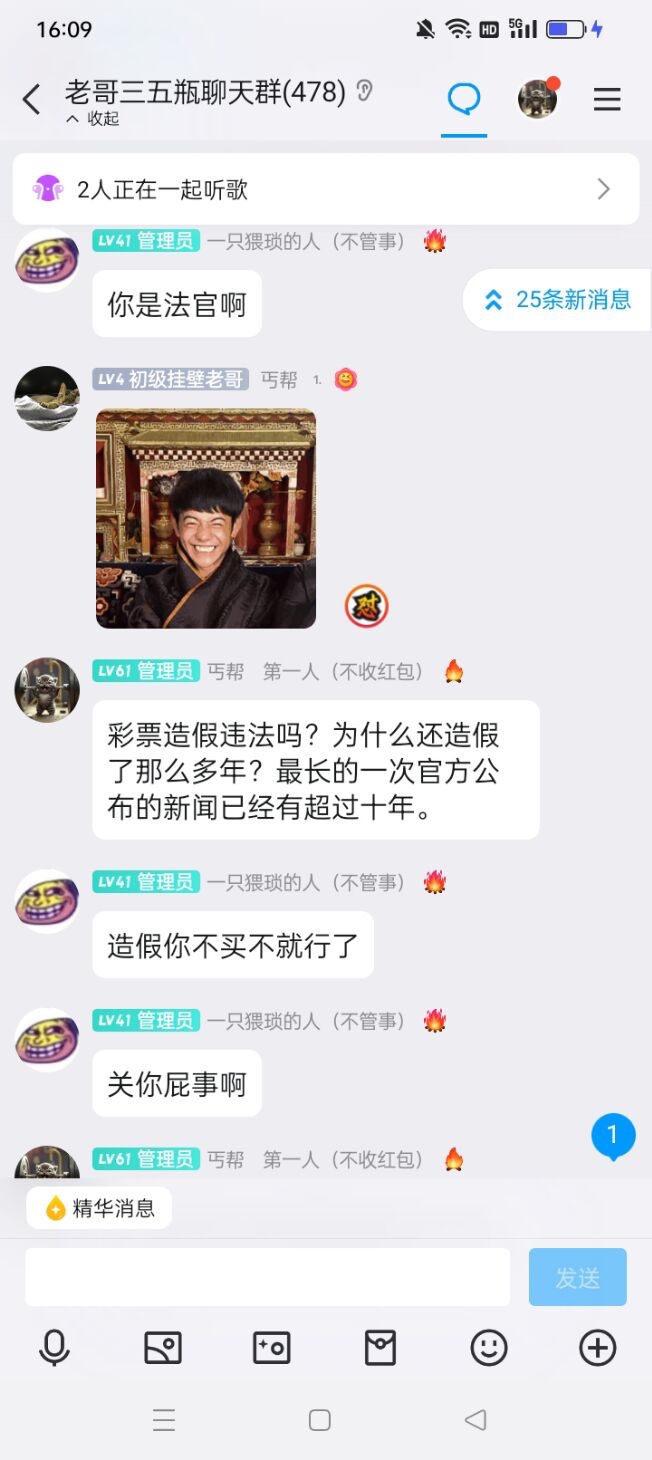 近日关于马小云买福利彩票双色球一事引发了争议! 事件发生在2024年3月7号的下午 马小云在老哥群发表了一些买双色球的言论 然后管理员禁言了马小云24小时 谁想到马小云竟然退群了, 有的群友提出疑问 还引发了管理层之间的互撕 事件言论进一步发酵到B站。马小云至今未作出任何回应  待续...