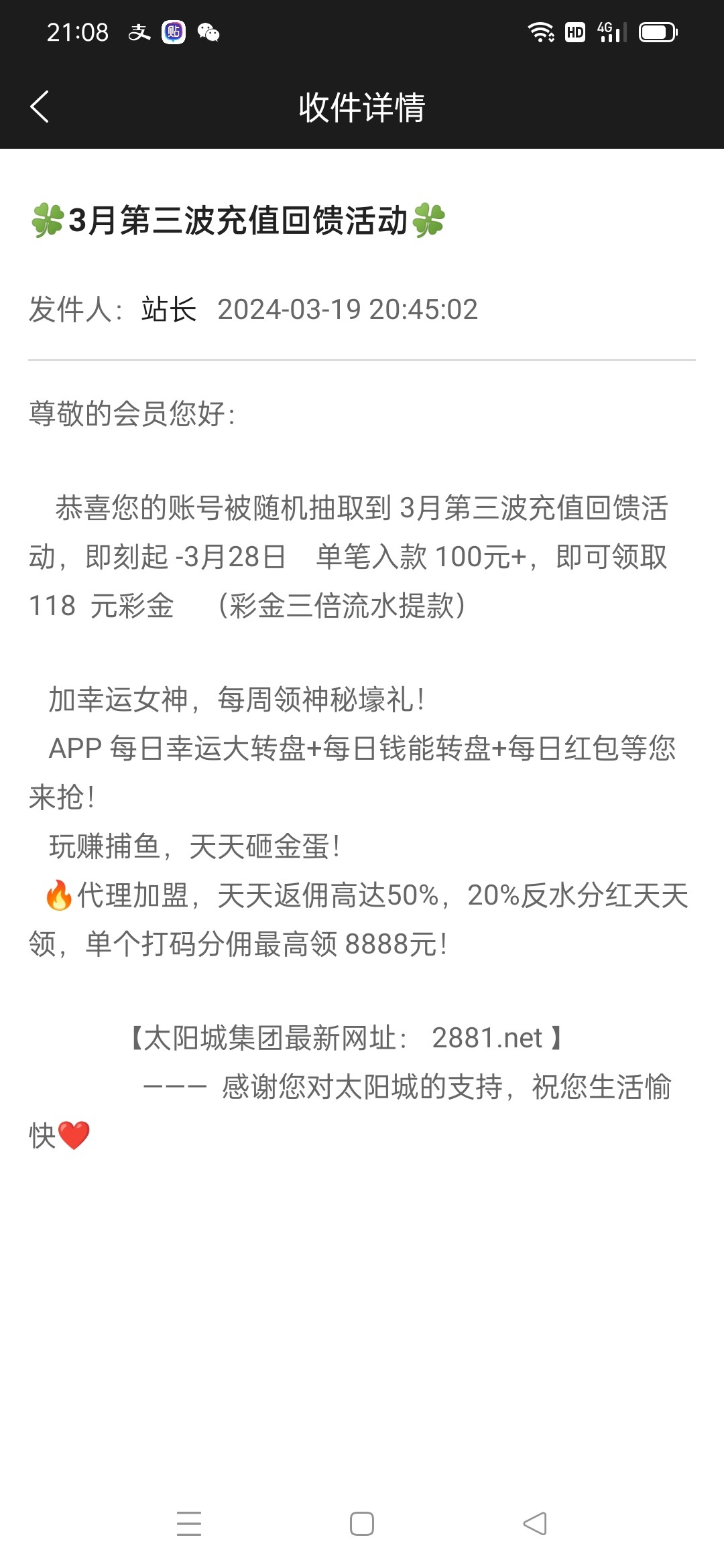 这个台子就是贱,你天天玩儿没有这个活动,偶尔玩儿一下,隔三差五给你打充100送66,77,118这样的活动。