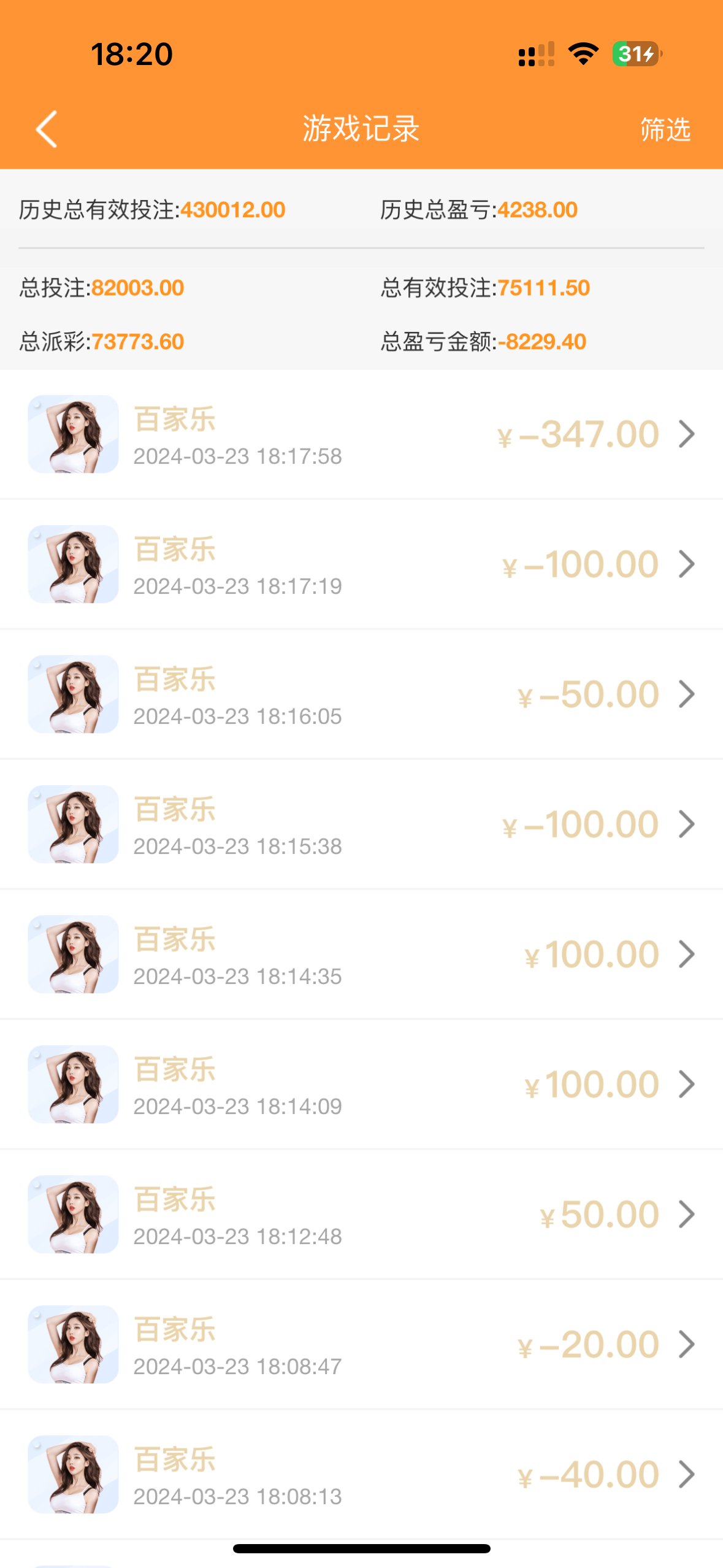 别让我看见这种我只想说很傻逼,白白送钱一样给别人,玩其他的一点点也是磨输干了,不同的是你这几百几千一注太傻逼了,吃人的东西吓人
