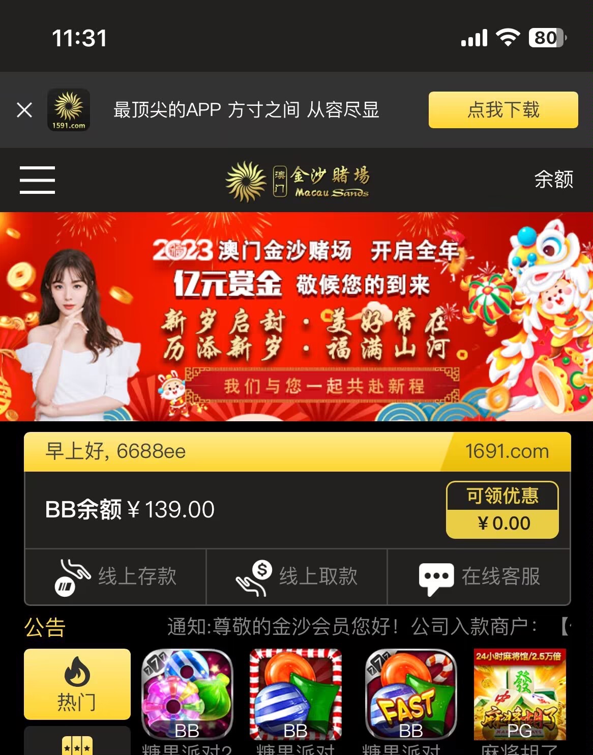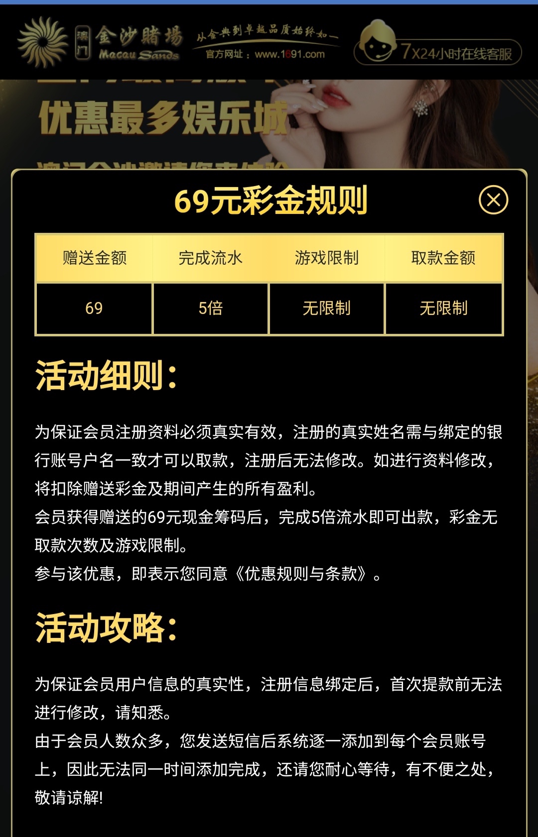 新用户注册按照步骤发送短信等几分钟最低送69,无游戏限制,五倍流水,最低100提现。
