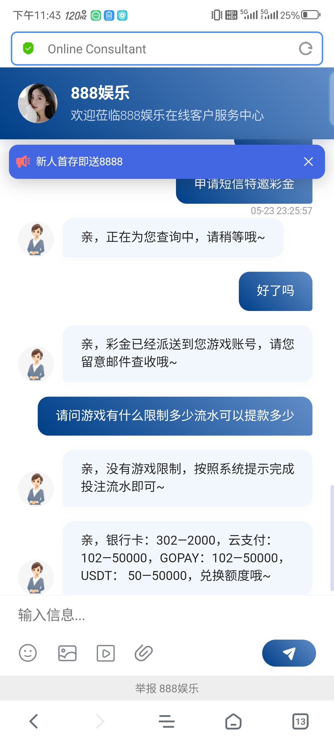 各位老哥888棋牌短信特邀碰瓷,看看是否有以下短信,一倍流水不限制,提现看渠道高低不同