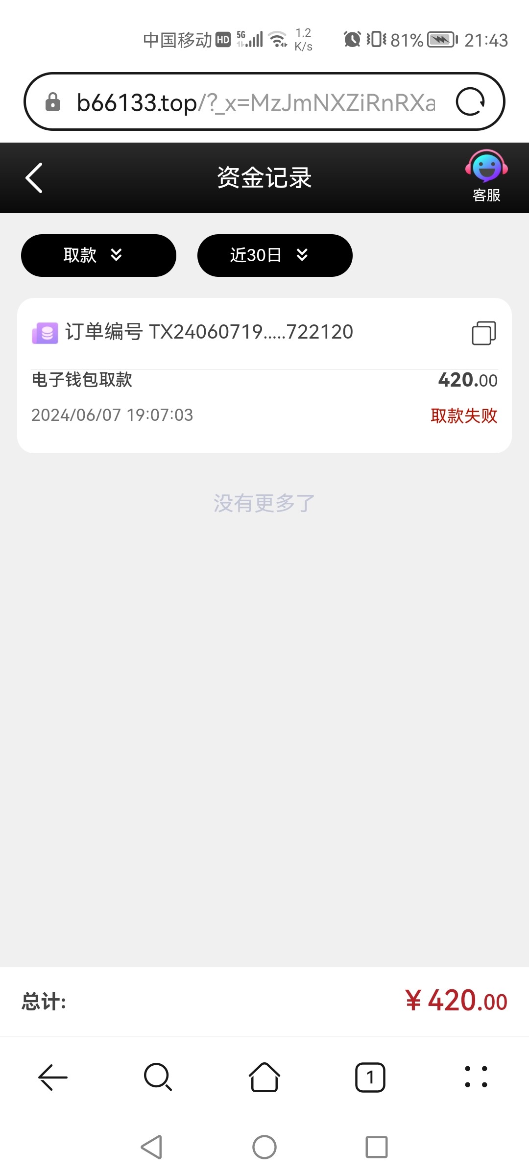 被黑金额: