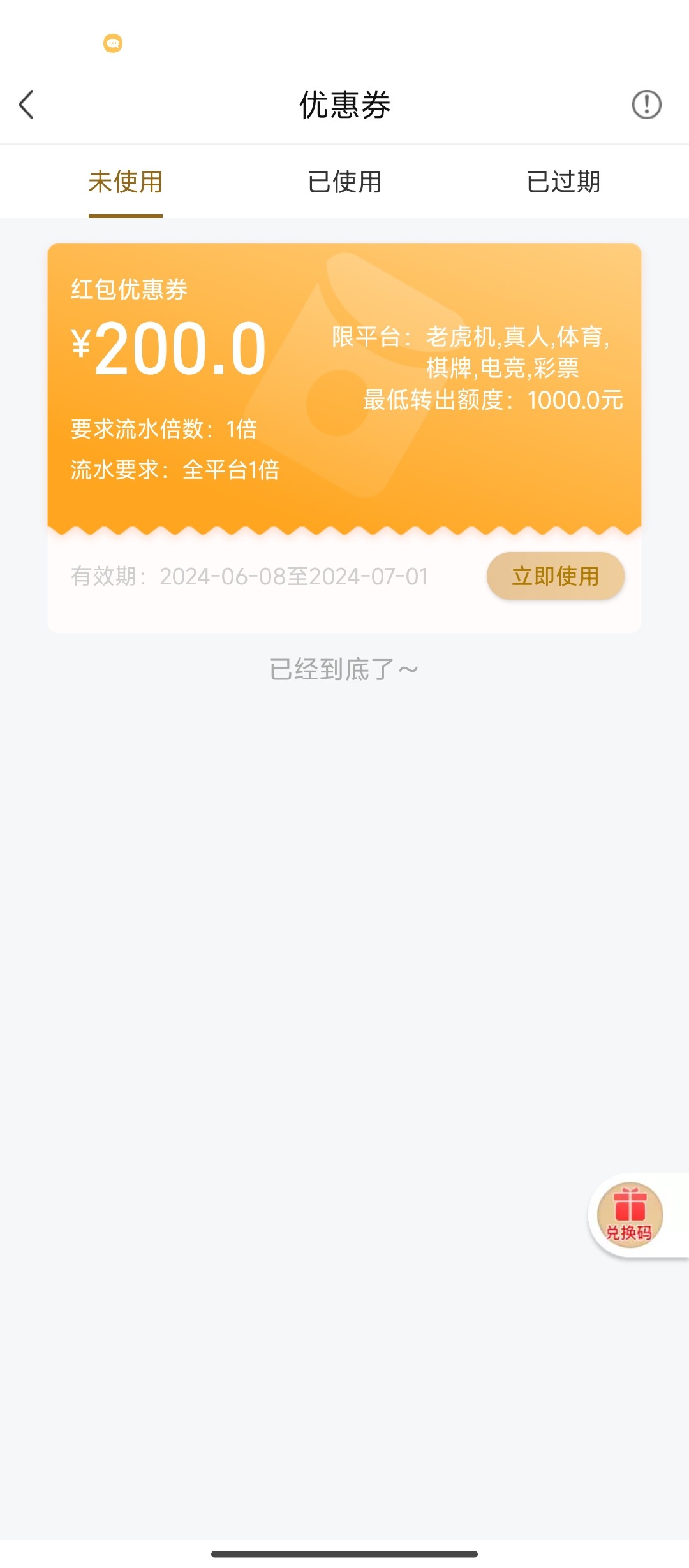 送了一张200的优惠款,需要充值198才能使用