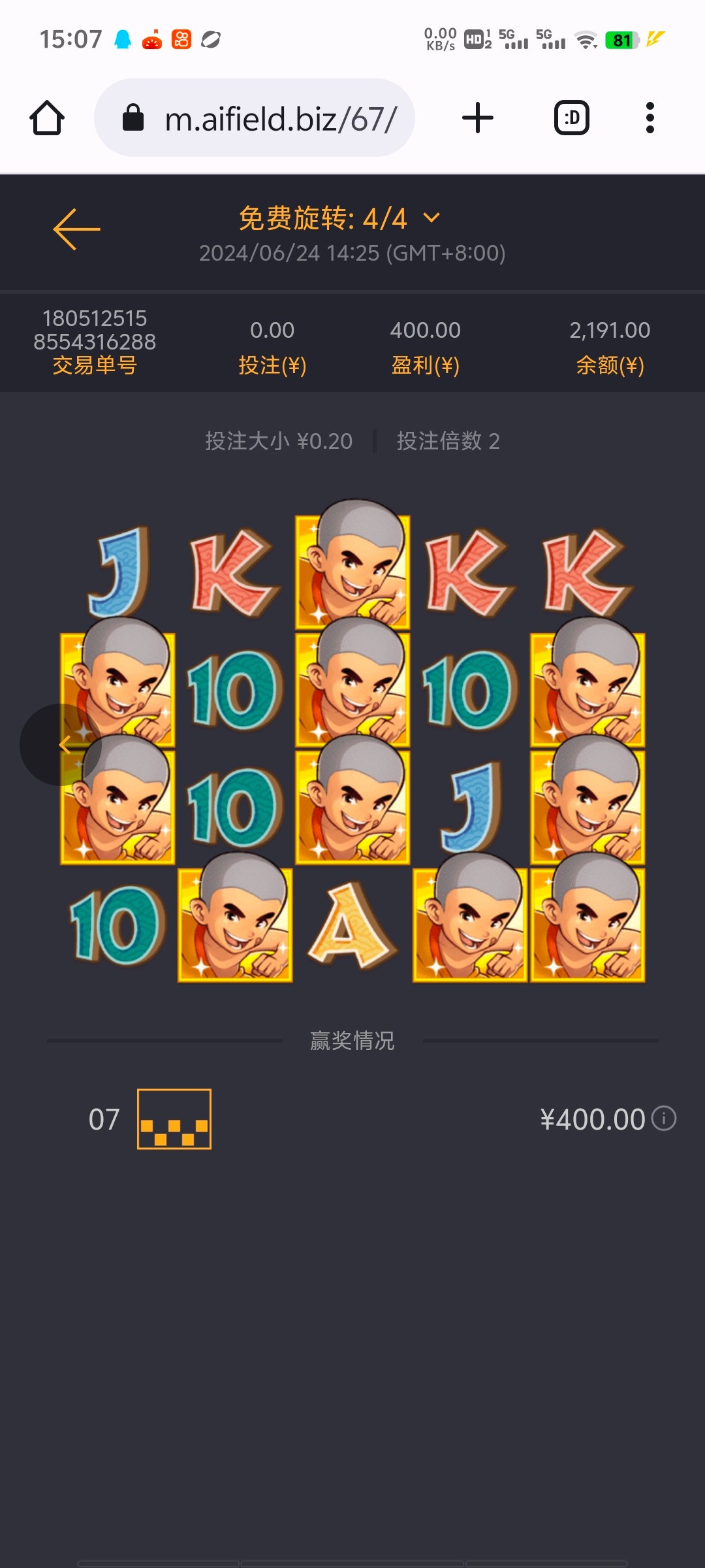 昨晚闲来无事,上了五百玩了玩,提了5500。今天又上500又提了一个。近期麻1,足球,大对决,亡灵有水亲测。麻2,女王,双喜,船长b水没有一个免费不带进的。老哥们发码,团饭