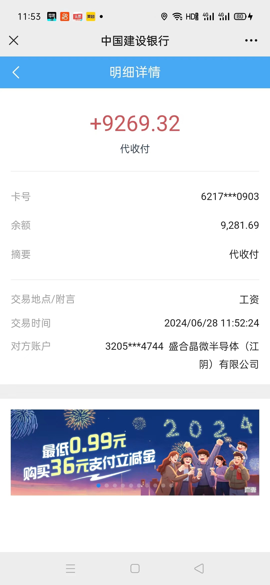 六月工资已到账