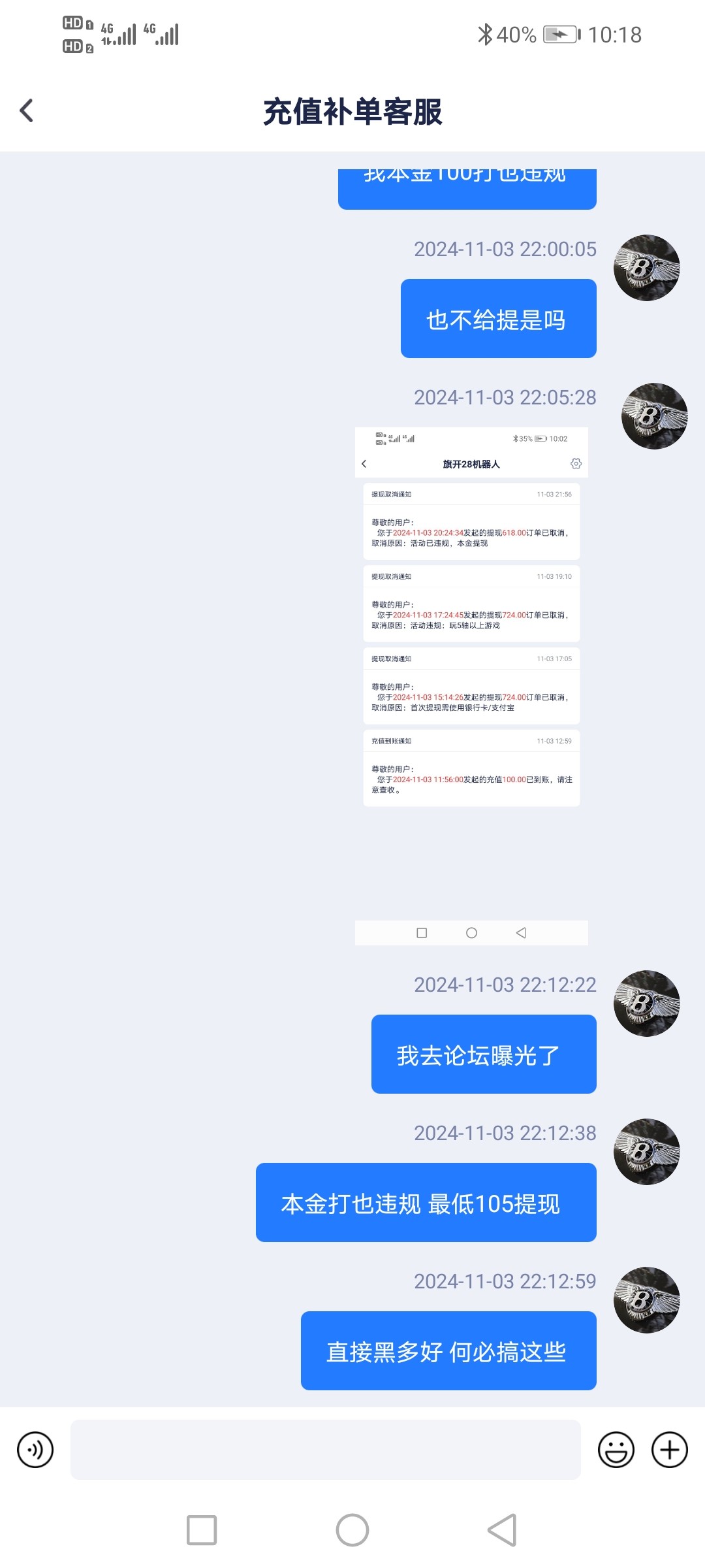100加100提现说违规退回本金 然后本金100打到600提现又说违规 老哥网推的台子