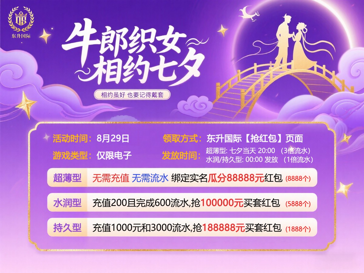 东盛国际七夕回馈,猪脚饭需要8月前注册且充值500+才能申请;七夕套钱的活动看介绍吧,纯分享出款自测。