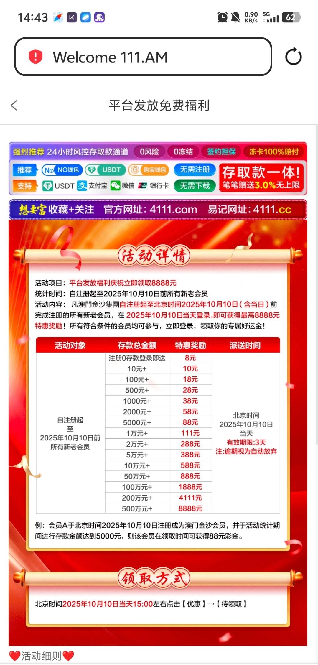 地址:111.am 10号之前注册过最低有8,其他自己看图,三点开始派送,我之前自己玩的台子,勿充值