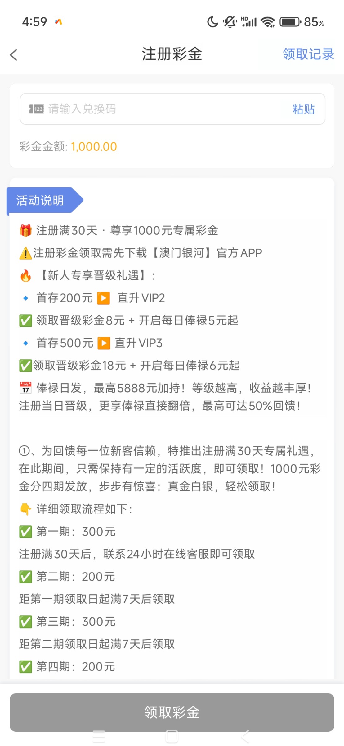 注册送一千的,有短信的去,没短信的等待,之前有人发过,反正要等一个月就找在线客服领