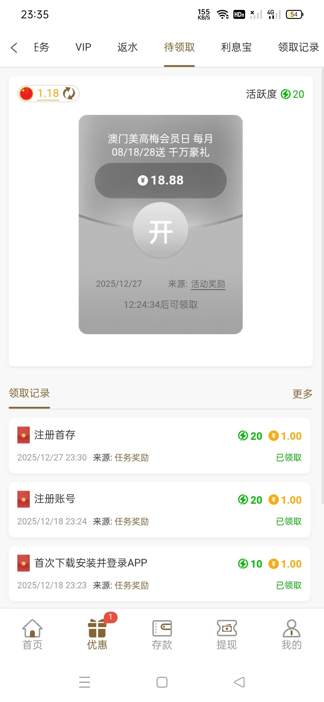 别去了 当天要冲100才能领
