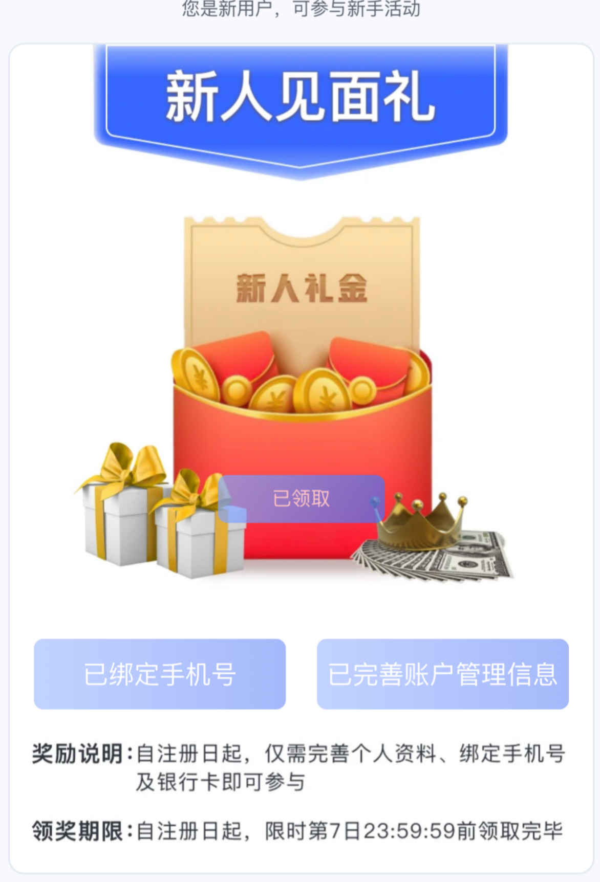 注册活动绑定信息(收款,手机号)领10