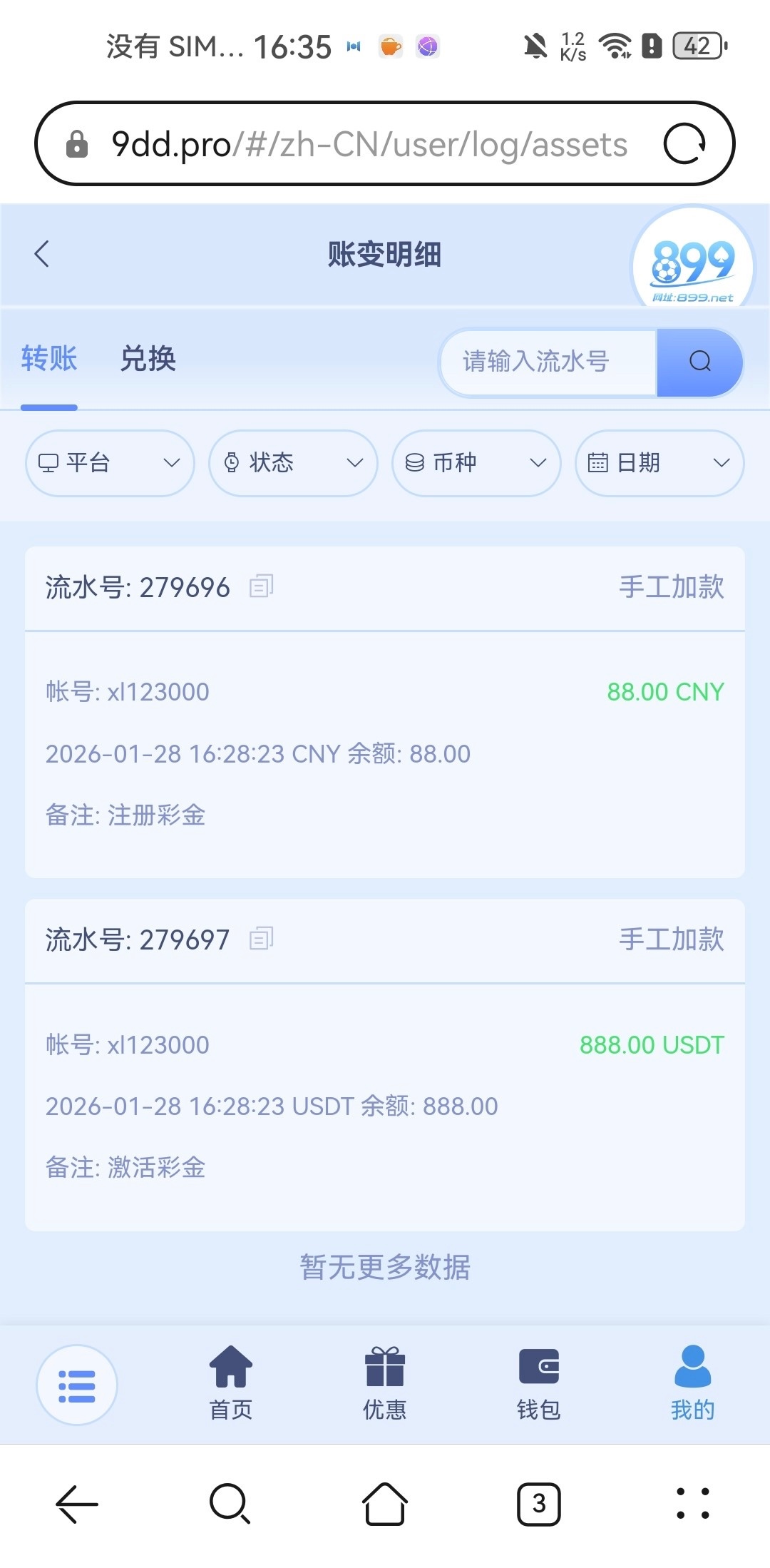 我接到电话的注册联系客服送88,还有个888usdt不知道什么东西,可以去碰一下,不知道能不能出款,还没打网址 9dd.pro