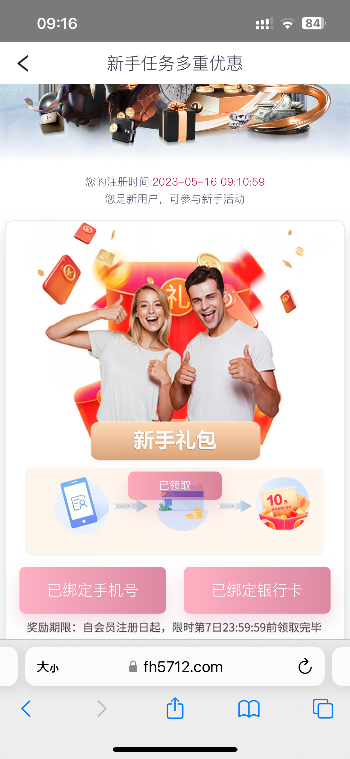 注册绑卡绑手机号活动里领取