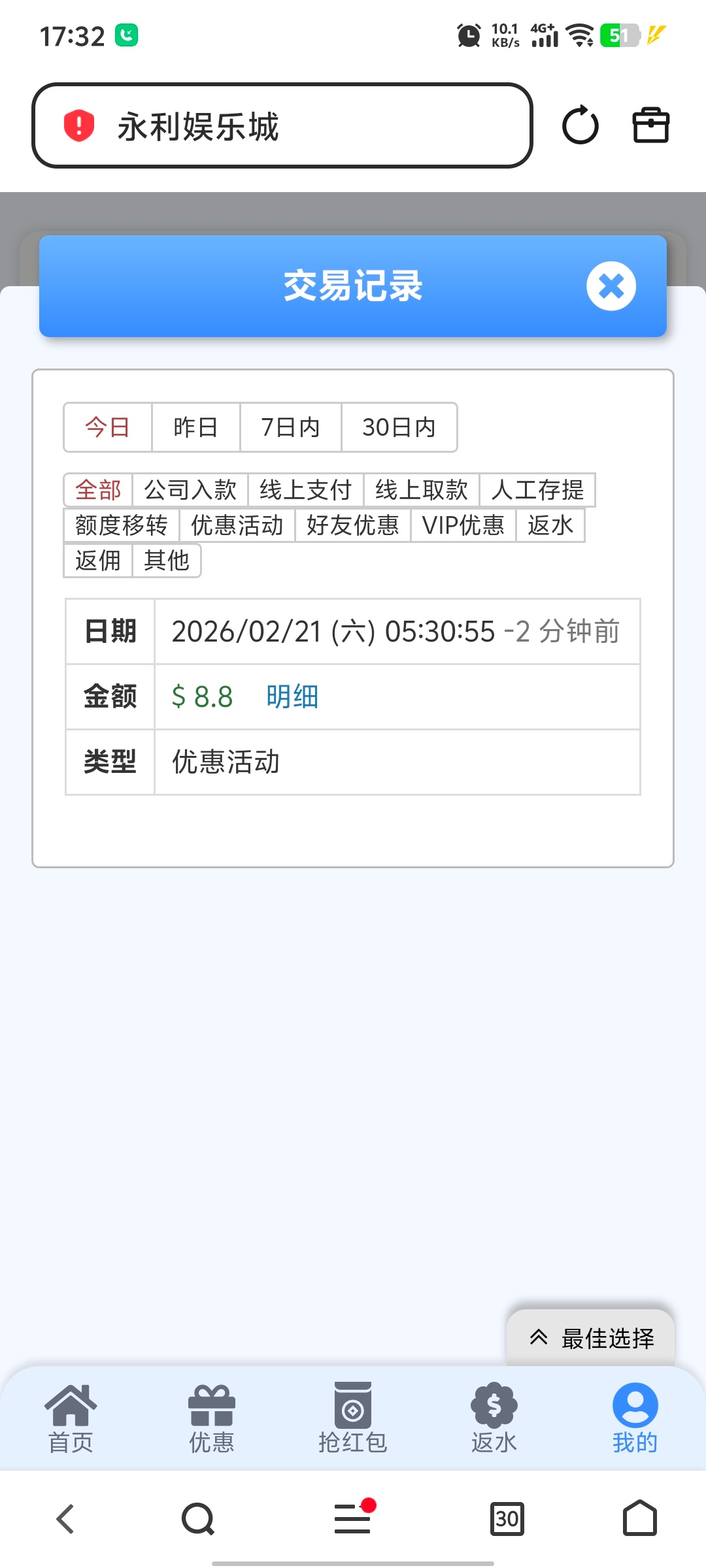 不知道什么彩金,登上给了9块