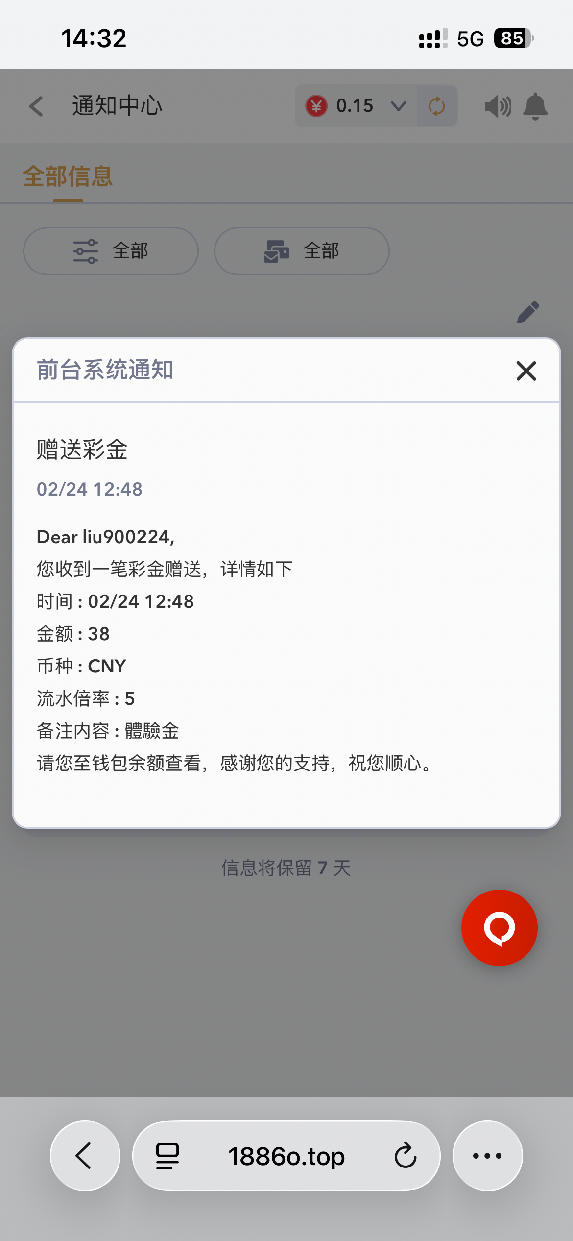 换个客服,直接说申请特邀彩金,他说要截图,你就说太多了,一天十多条,翻不到,然后再随便截图一下短信界面,那种垃圾短信,最好能看到一排下来都是