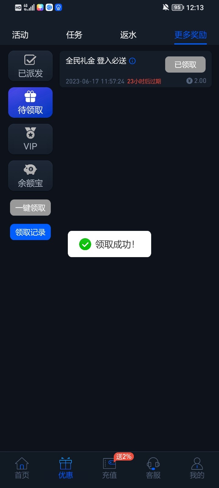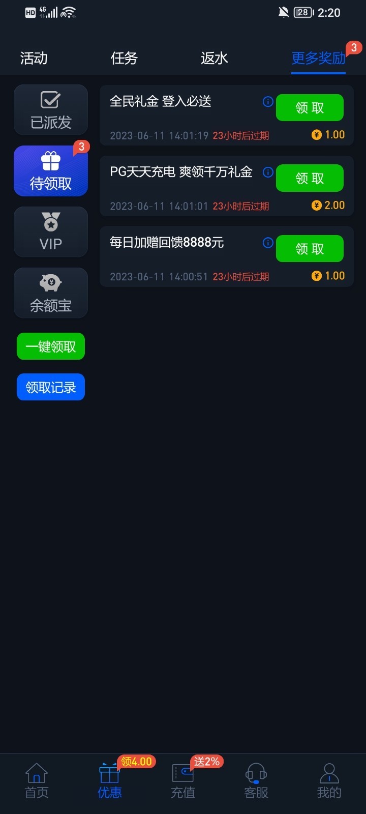 注册下载每天登录次日都会送几块