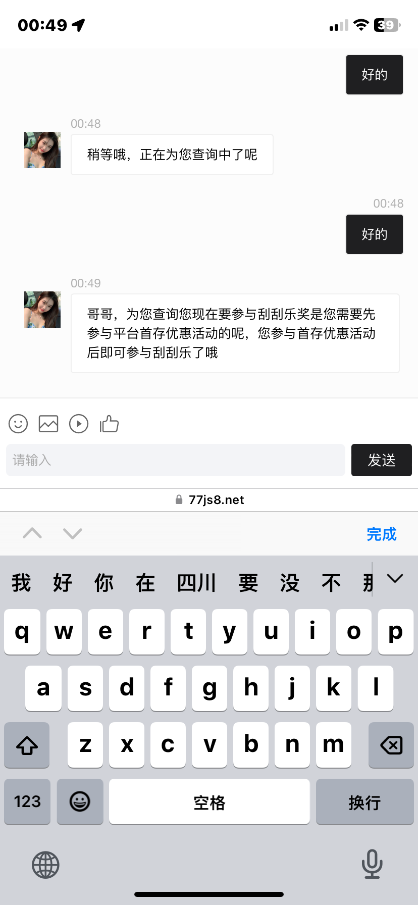 私聊客服到账