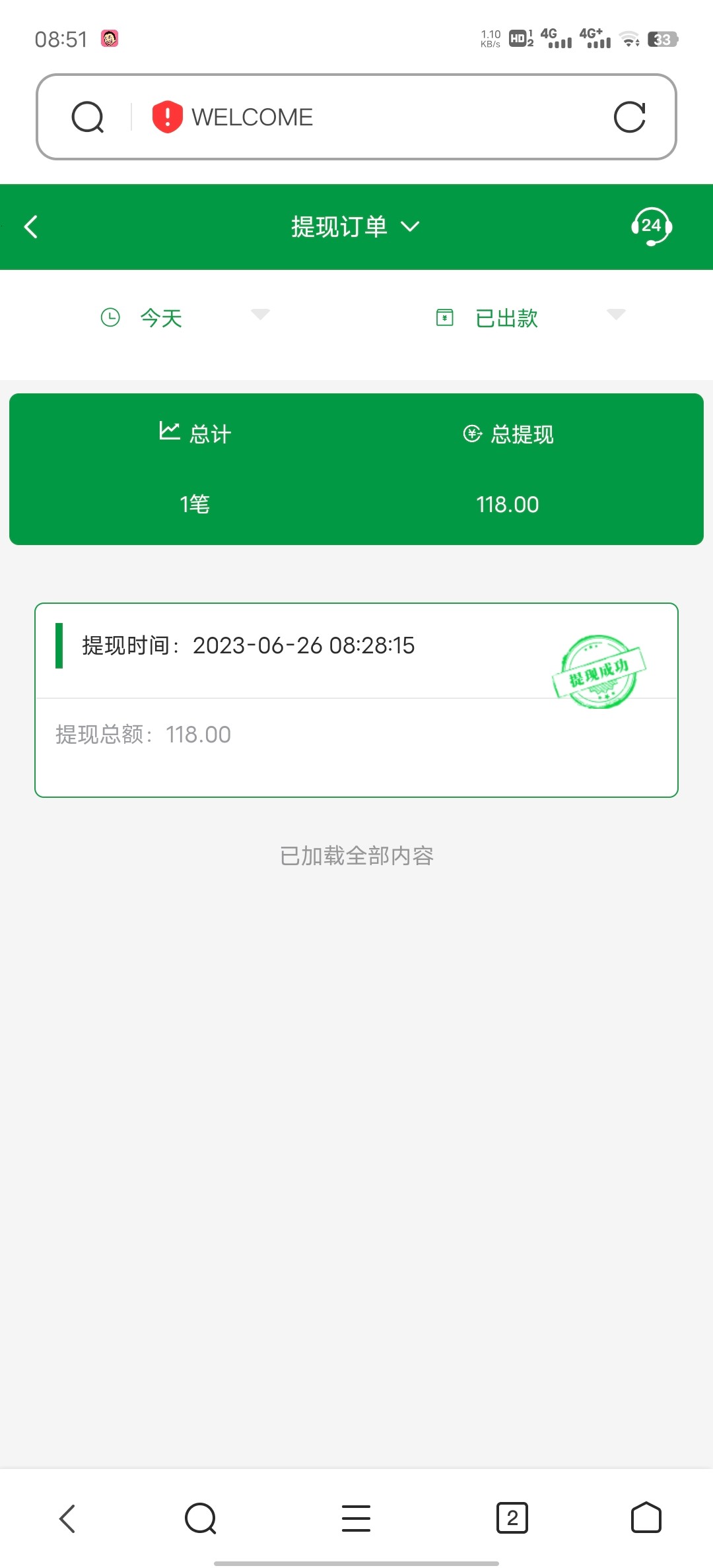 登号发现有一块,打到118提现,大格局,这都给到账,分文没充
